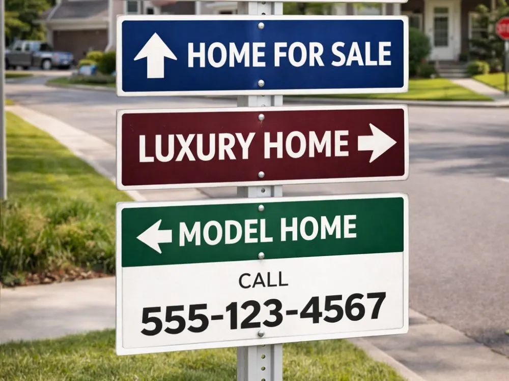 Get custom navigational signs designed to guide buyers directly to your listings with ease. From directional arrows to open house signs, we create clear, visible solutions that enhance your property marketing. Contact us today to get started with signage tailored to your real estate needs.